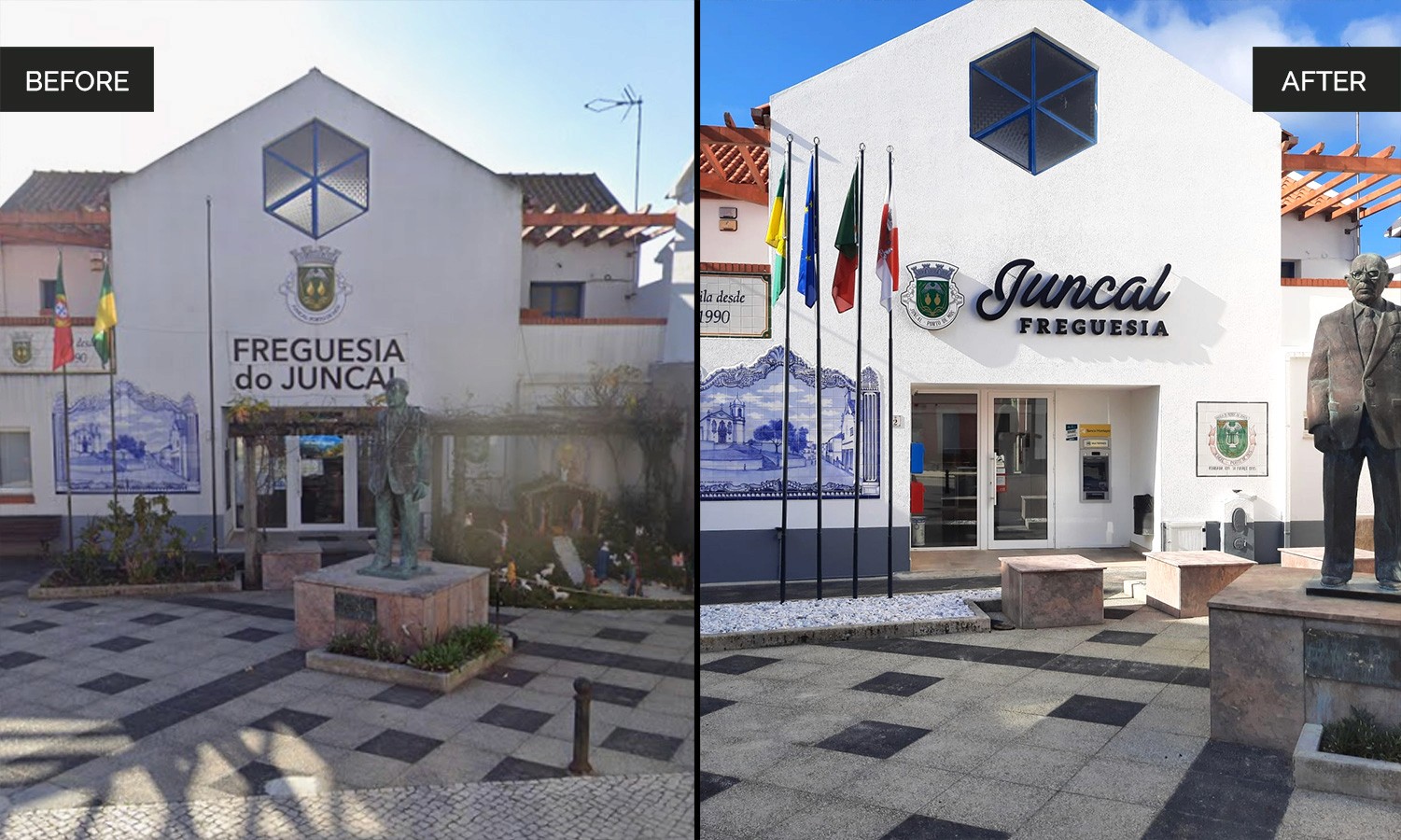 This is a collection of before and after photos. The process was similar to all. Deep briefing analisys with client, research, sketches, followed by the actual visual projects. Depending on the project, i would use, photomanipulation, tecnical drawing, 3d design on sketchup or vectorial presentations. Some demanded typography, illustration, and the combination between several materials